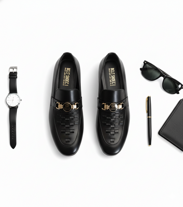 Enhance your wardrobe with the 👞 Handmade Charcoal Rexsine Loafers with Copper Etched Strap, an exclusive collaboration between HS Shoes and Business Point Trader. Crafted from premium charcoal Rexsine with a deep, sophisticated finish, these artisanal slip-on loafers feature a slightly pointed toe and a standout copper-tone metal strap with a minimalist etched line design across the vamp for a subtle yet elegant touch 💼. The padded cushioned insole ensures all-day comfort, while the durable charcoal rubber sole provides excellent traction and longevity ✂️. Handmade with meticulous craftsmanship, these premium men's loafers are perfect for formal occasions, business meetings, or semi-formal events, combining understated elegance with modern appeal 🕒. Discover the SEO-friendly men's dress shoes ideal for office wear, weddings, and stylish outfits at HS Shoes x Business Point Trader 👞. Shop now for these handcrafted leather loafers that redefine sophistication! 🌐
